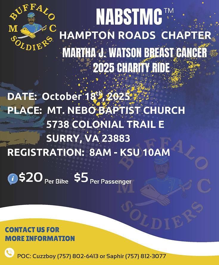 It is an honor and a pleasure to be the President of the Hampton Roads Chapter of the National Association of Buffalo Soldiers and Troopers Motorcycle Club.